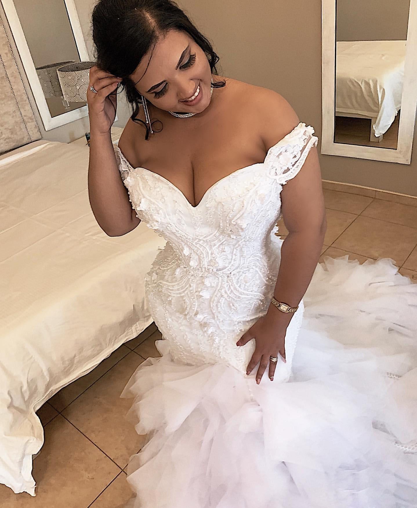 This tony ward wedding dress came with a ruffled mermaid skirt and a plunging illusion neckline, but the.